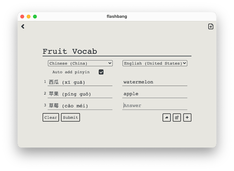 Automatically adds pinyin alongside characters while studying chinese languages (experimental). Supports pinyin display above or inline with characters. Alternatively you can choose to hide it competely with just the flip of a switch.
